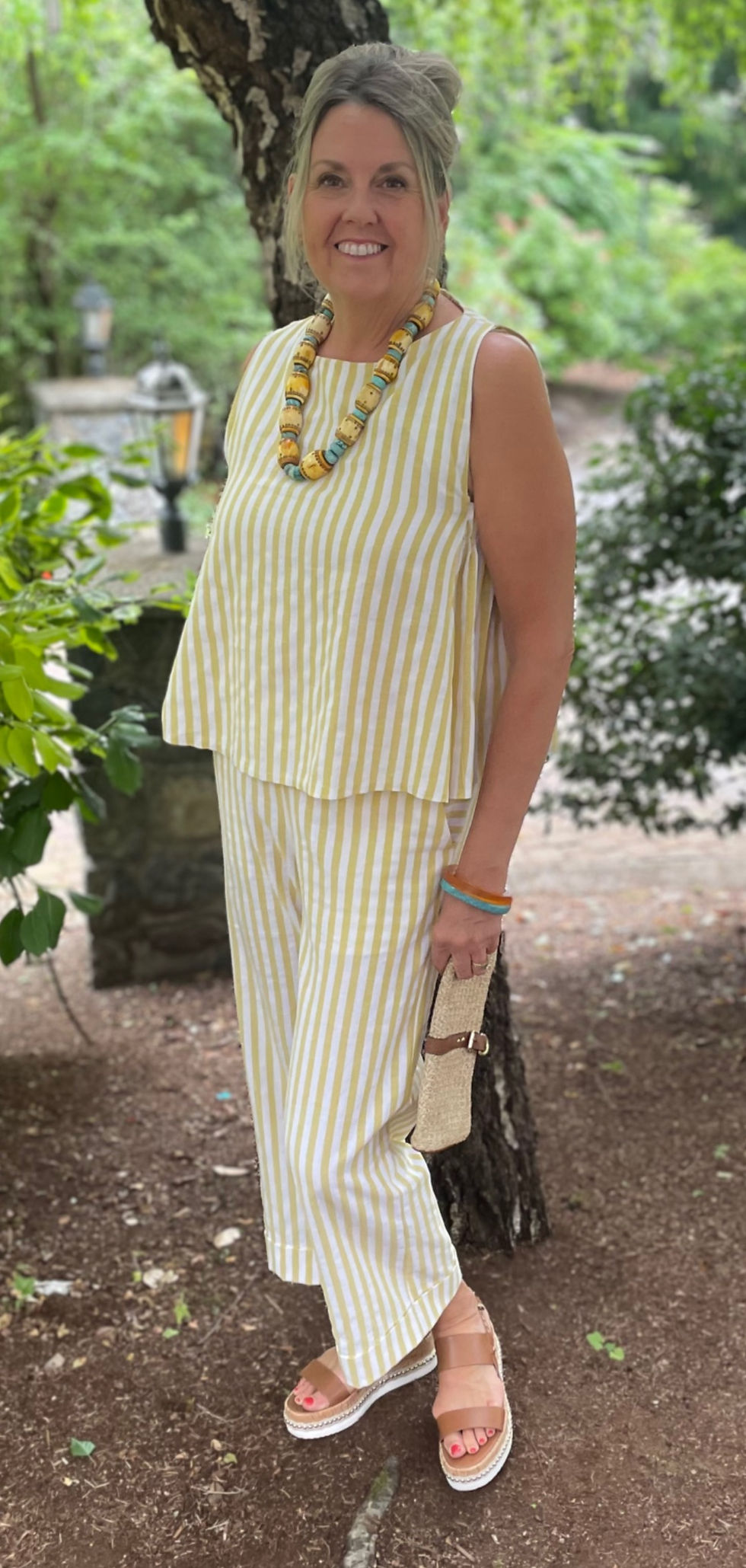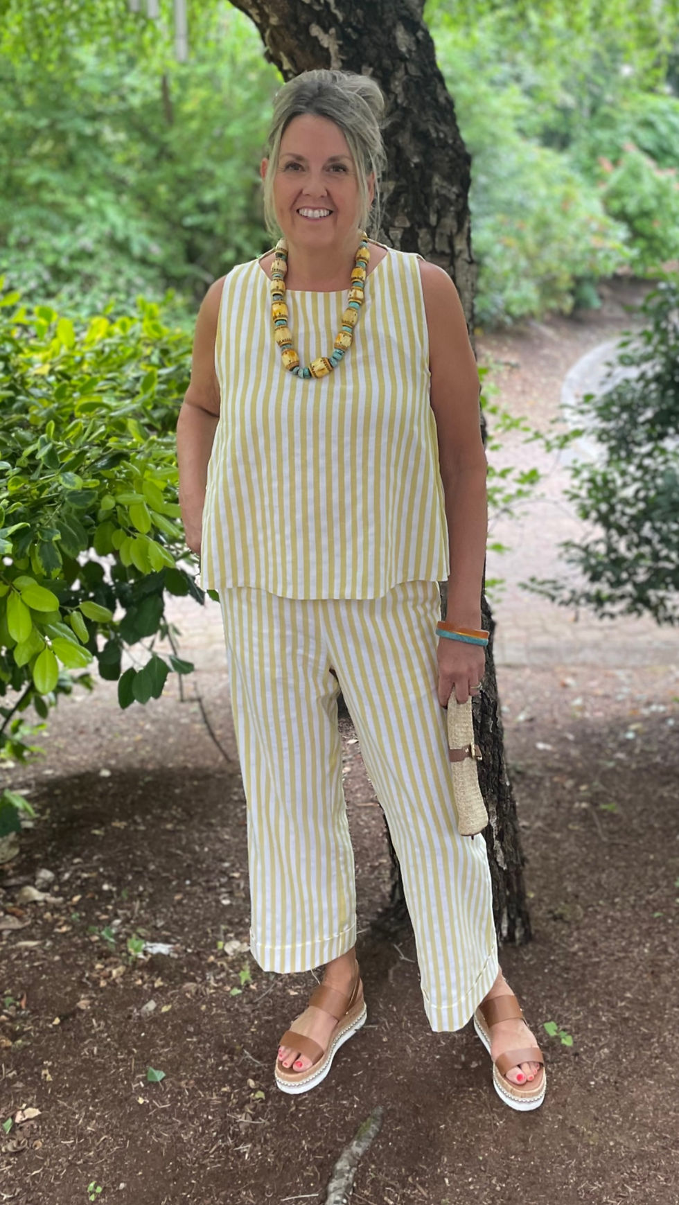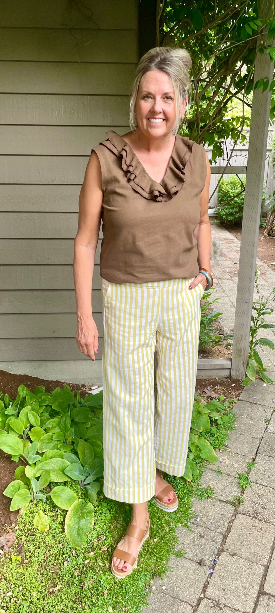 For the pants I choose to use this lovely striped linen fabric from Polytex Stoffen. The pants look lovely with my linen flounce top and match perfectly with my Quilla Top that you can see here. With two co-ord sets sewn up, I now have a mini mix and match wardrobe for a weekend away.