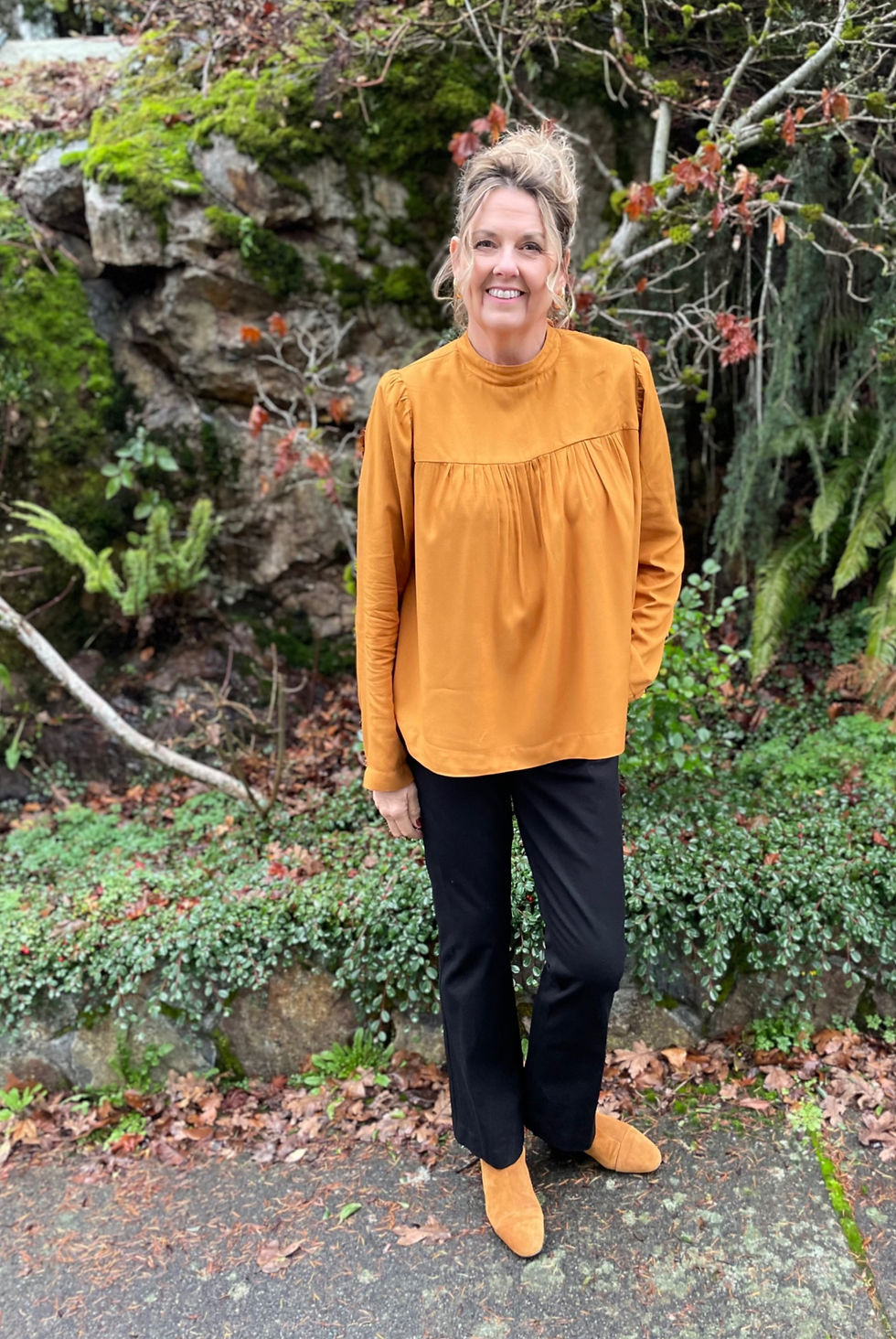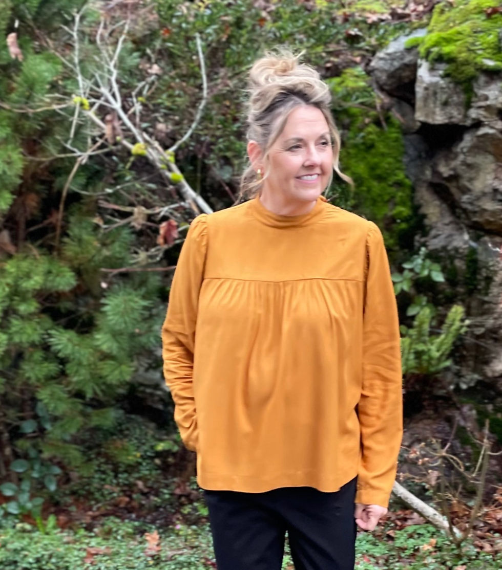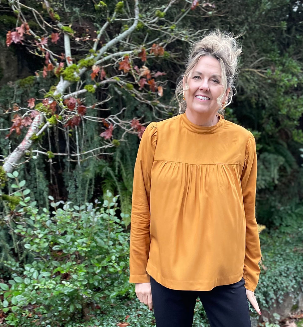 Sewing the blouse in a light-weight woven fabric allows the bodice to drape beautifully. The styling of the blouse makes it very versatile. It can be worn with trousers, jeans, skirts or leggings. The blouse can be worn cropped, tucked in or belted; all excellent styling options for a multi-seasonal wardrobe addition.